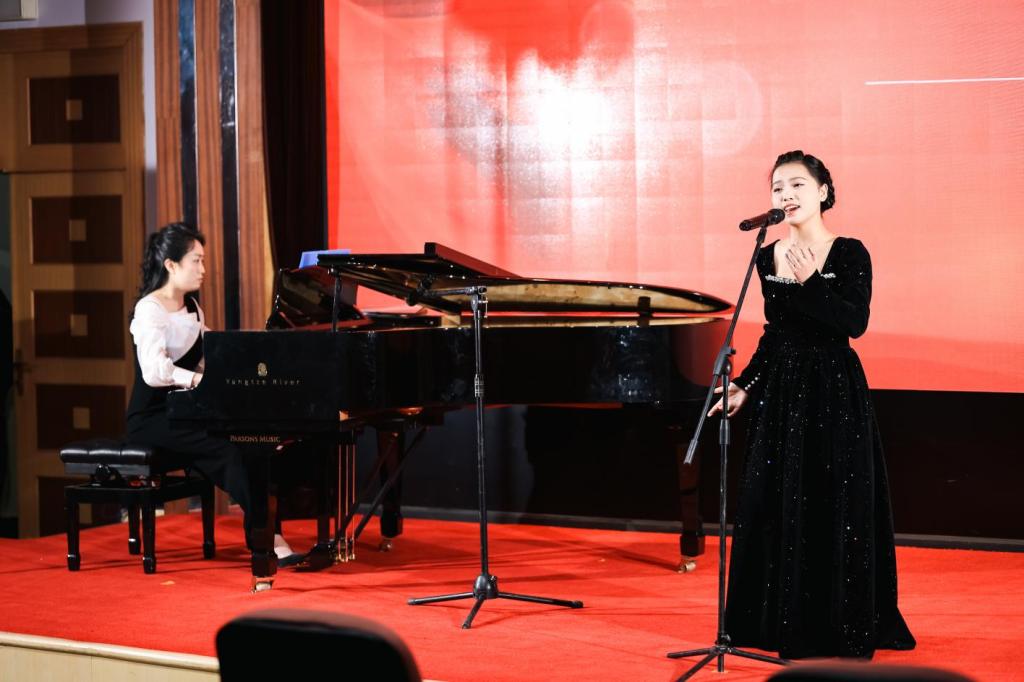 音樂會的驚喜是由劉潔老師擔(dān)任鋼琴藝術(shù)指導(dǎo),寇利利老師深情演唱的《千古絕唱》《櫻桃好吃樹難栽》,其精彩表演贏得了全場師生們的熱烈掌聲。