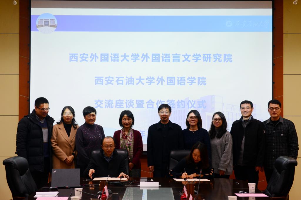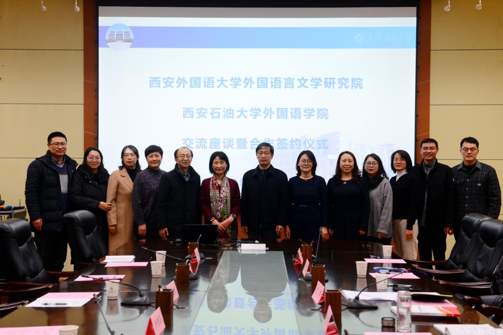 我校外國語學院黨委書記田虹霞介紹了學院的基本情況,著重就學院近年來的教學科研、師資隊伍、人才培養(yǎng)、社會服務等情況進行交流。西安外國語大學外國語言文學研究院院長黃立波介紹了研究院基本情況及近3年取得的重要學術成果。雙方代表圍繞教育教學、科學研究、人才培養(yǎng)等方面的合作展開熱烈討論與交流。