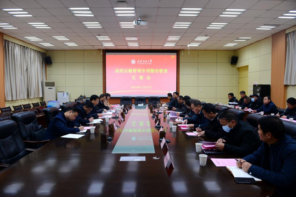 會(huì)上,后勤處處長(zhǎng)茍金虎向督查組作了專(zhuān)題匯報(bào),從學(xué)生食堂管理、公寓管理、物業(yè)管理、維修改造、隊(duì)伍建設(shè)、整治成效等幾個(gè)方面匯報(bào)了我校專(zhuān)項(xiàng)整治工作推進(jìn)情況。