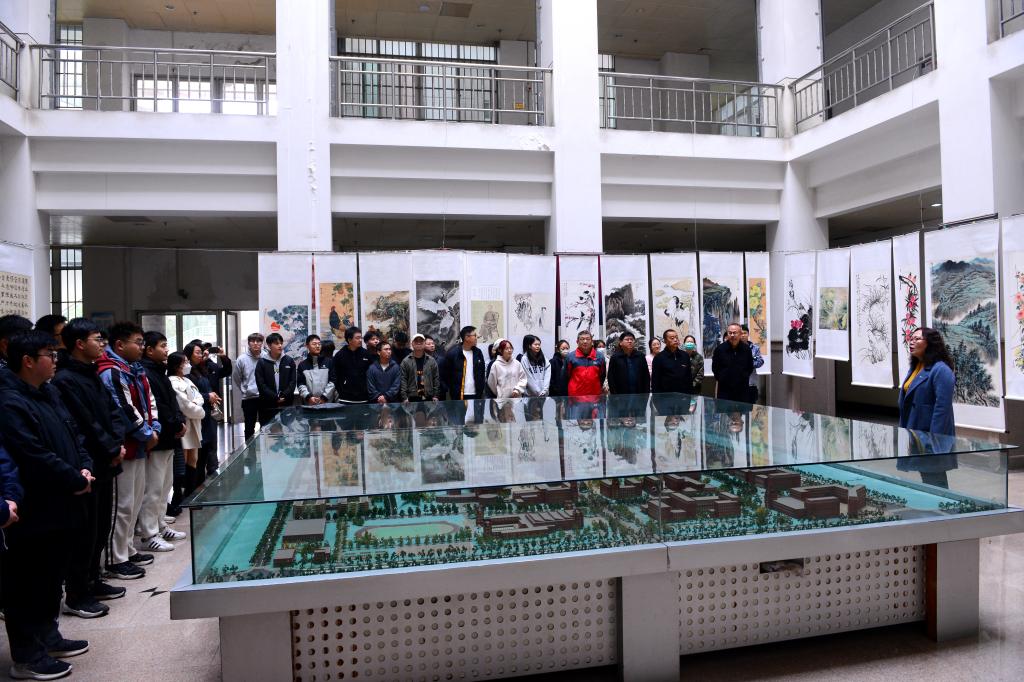 最后他希望廣大書畫愛好者在新時代要創(chuàng)作出新的時代風(fēng)貌,用初心做畫筆,以激情當(dāng)顏料,創(chuàng)作出無愧于時代的作品。更希望借助于本次展覽吸引更多的書畫愛好者加入到書畫協(xié)會當(dāng)中來,把學(xué)校校園文化建設(shè)推向新的高度。