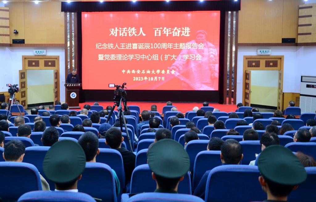 2023年10月8日是鐵人王進喜同志誕辰100周年紀念日,在全黨開展學(xué)習(xí)貫徹習(xí)近平新時代中國特色社會主義思想主題教育之際,在鐵人誕辰100周年這個重要節(jié)點,10月7日上午,學(xué)校紀念鐵人王進喜誕辰100周年主題報告會暨黨委理論學(xué)習(xí)中心組(擴大)學(xué)習(xí)會在雁塔校區(qū)會議中心學(xué)術(shù)報告廳舉行,以此紀念鐵人王進喜同志,激勵全體師生員工進一步弘揚鐵人精神,傳承紅色基因,凝聚奮進力量。校黨政領(lǐng)導(dǎo)班子成員參加活動。會議由校黨委副書記、紀委書記、監(jiān)察專員李延平主持。