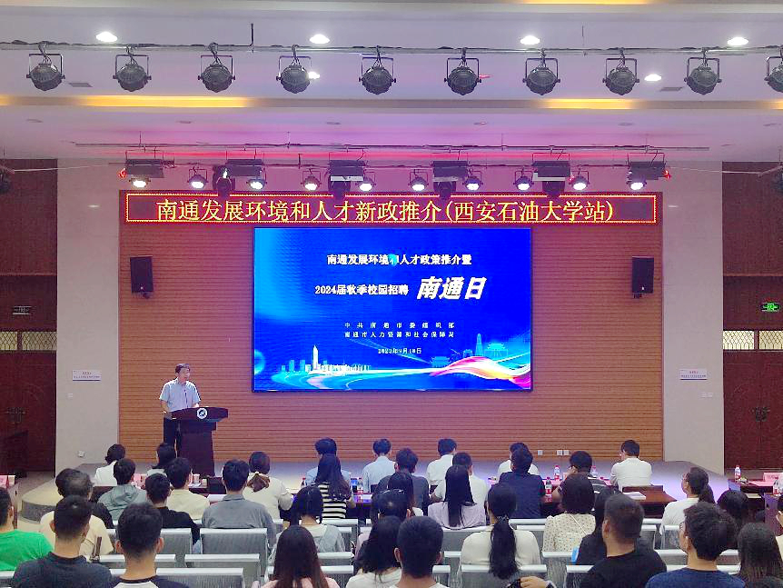 9月18日上午,南通市2023年校園招聘“南通日”活動(西安石油大學站)專場招聘會在我校鄠邑校區(qū)成功舉辦。我校黨委副書記張木,南通市人力資源和社會保障局黨組書記、局長王一鳴,南通市人力資源和社會保障局黨組成員、副局長曹星暉等出席會議。南通市企業(yè)代表,我校就業(yè)指導中心全體工作人員,各院(系)學生工作主要負責同志,2024屆畢業(yè)班輔導員,畢業(yè)生代表300余人參加會議。會議由我校學生工作部(處)部(處)長、就業(yè)指導中心主任王亮主持。