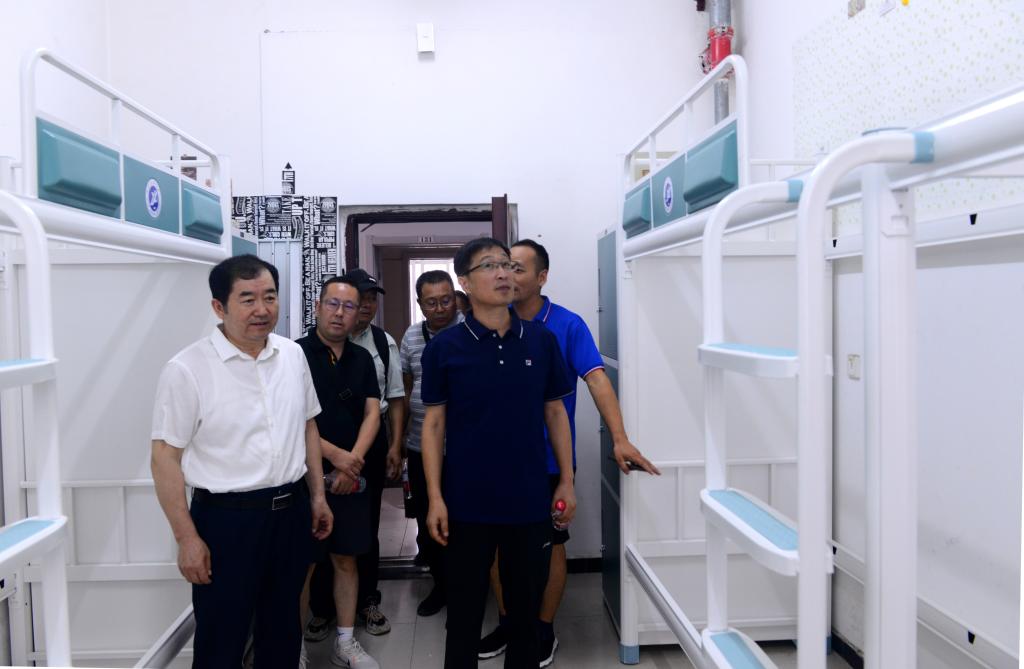 李天太一行先后來到鄠邑校區(qū)學(xué)生宿舍、校園等施工現(xiàn)場(chǎng),實(shí)地勘察作業(yè)情況,慰問暑期堅(jiān)守在一線的工作人員,叮囑他們要注意身體,做好防暑降溫工作,確保各項(xiàng)工程安全、有序、保質(zhì)、按時(shí)完成。