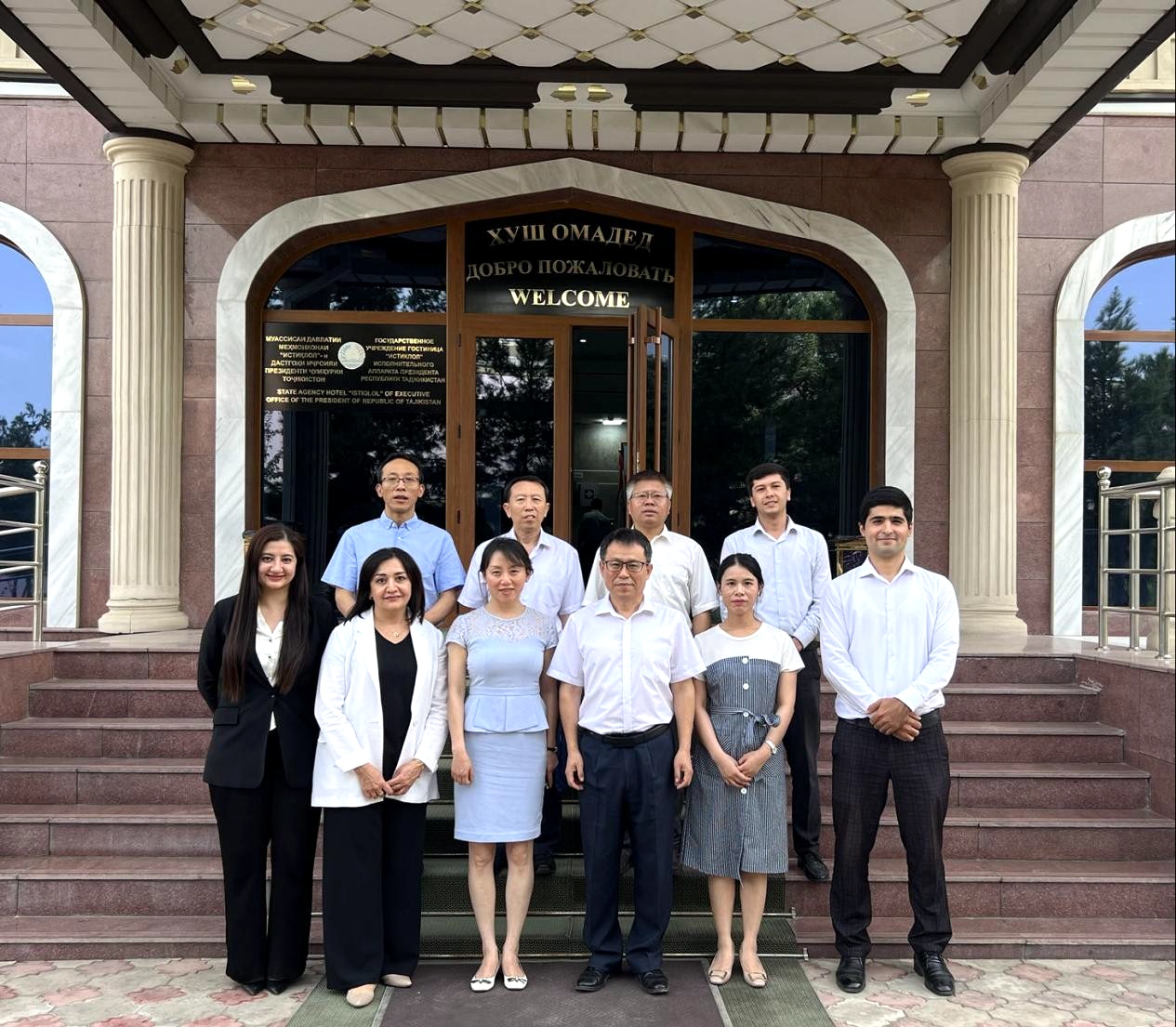 拜訪塔吉克斯坦教科部,受到塔吉克斯坦教科部第一副部長朱奈德·賈姆希德·哈比布洛(右四)的接待
