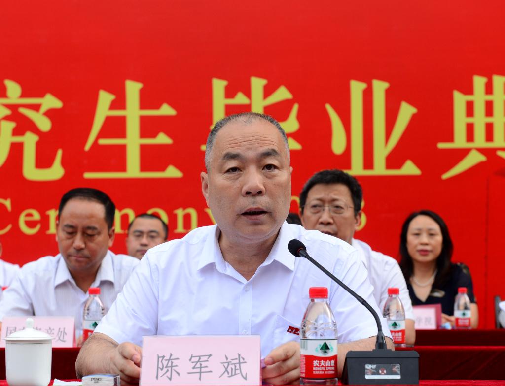校長(zhǎng)李天太為2023屆博士、碩士研究生致辭。李天太代表學(xué)校全體教職工向順利完成學(xué)業(yè)、獲得學(xué)位的1298名研究生表示熱烈祝賀,向辛勤培育同學(xué)們的老師、默默支持同學(xué)們的親友和社會(huì)各界朋友表示誠(chéng)摯敬意。李天太回顧了我校研究生教育近三年獲得的成就及2023屆畢業(yè)研究生在學(xué)業(yè)、科研和學(xué)科競(jìng)賽等方面取得的成績(jī),并向即將告別母校、踏上征途的研究生提出三點(diǎn)希望:一是修身立德、心懷理想,將國(guó)家民族命運(yùn)系于己身;二是胸懷天下、勇于擔(dān)當(dāng),立于時(shí)代之先永不止步;三是積極進(jìn)取、開(kāi)拓創(chuàng)新,成為擁有真本領(lǐng)的棟梁之才。最后李天太寄語(yǔ)廣大畢業(yè)研究生,希望他們以遠(yuǎn)大理想持續(xù)引領(lǐng)未來(lái)事業(yè)的發(fā)展方向,以創(chuàng)新思維努力構(gòu)筑未來(lái)事業(yè)的發(fā)展平臺(tái),以必勝信念不斷贏得未來(lái)事業(yè)的發(fā)展成就,以深刻思考真正領(lǐng)悟未來(lái)人生的價(jià)值意義,堅(jiān)持積極進(jìn)取,不斷學(xué)習(xí),提升自我、完善自我、更新自我,練就過(guò)硬本領(lǐng),努力成為可堪大用、能擔(dān)重任的棟梁之材。