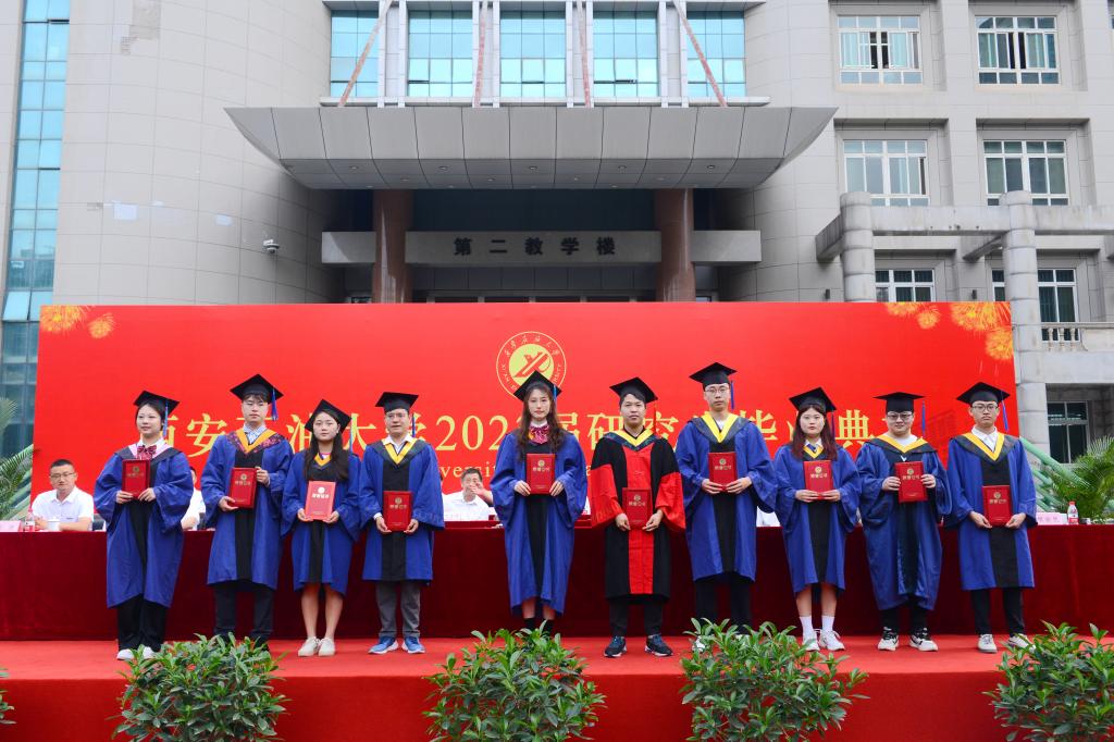畢業(yè)典禮結(jié)束后,2023屆研究生學(xué)位授予儀式在雁塔校區(qū)會(huì)議中心學(xué)術(shù)報(bào)告廳隆重舉行。校長(zhǎng)、校學(xué)位評(píng)定委員會(huì)主席李天太為500余名研究生畢業(yè)生代表授予學(xué)位。李天太逐一為獲得學(xué)位的研究生畢業(yè)生代表正冠撥蘇、頒發(fā)學(xué)位證書(shū)、并合影留念。畢業(yè)生們深情地鞠躬,昂揚(yáng)地從校長(zhǎng)手中接過(guò)學(xué)位證書(shū),帶著朝氣開(kāi)啟建功立業(yè)新時(shí)代的征程。