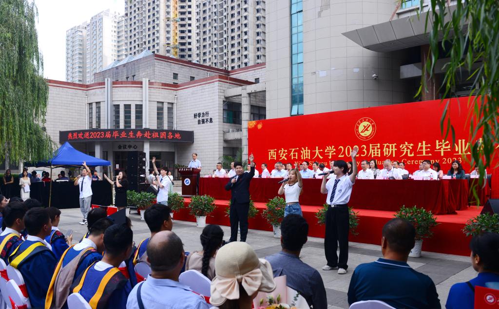 校學(xué)位評(píng)定委員會(huì)副主席、校黨委副書(shū)記張木宣讀了《西安石油大學(xué)關(guān)于授予王海洋等1298名研究生博士、碩士學(xué)位的決議》;校黨委副書(shū)記雷西合宣讀了《西安石油大學(xué)校友總會(huì)關(guān)于聘任2023屆年級(jí)校友理事的決定》;副校長(zhǎng)張榮軍宣讀了《西安石油大學(xué)關(guān)于表彰2022-2023學(xué)年優(yōu)秀博士、碩士學(xué)位論文作者及指導(dǎo)教師的決定》;總會(huì)計(jì)師樊曉民宣讀了《西安石油大學(xué)關(guān)于表彰2023屆優(yōu)秀畢業(yè)生的決定》。與會(huì)校領(lǐng)導(dǎo)為研究生優(yōu)秀畢業(yè)生代表,優(yōu)秀博士、碩士學(xué)位論文作者頒發(fā)了榮譽(yù)證書(shū),為校友理事代表頒發(fā)了聘任證書(shū)。