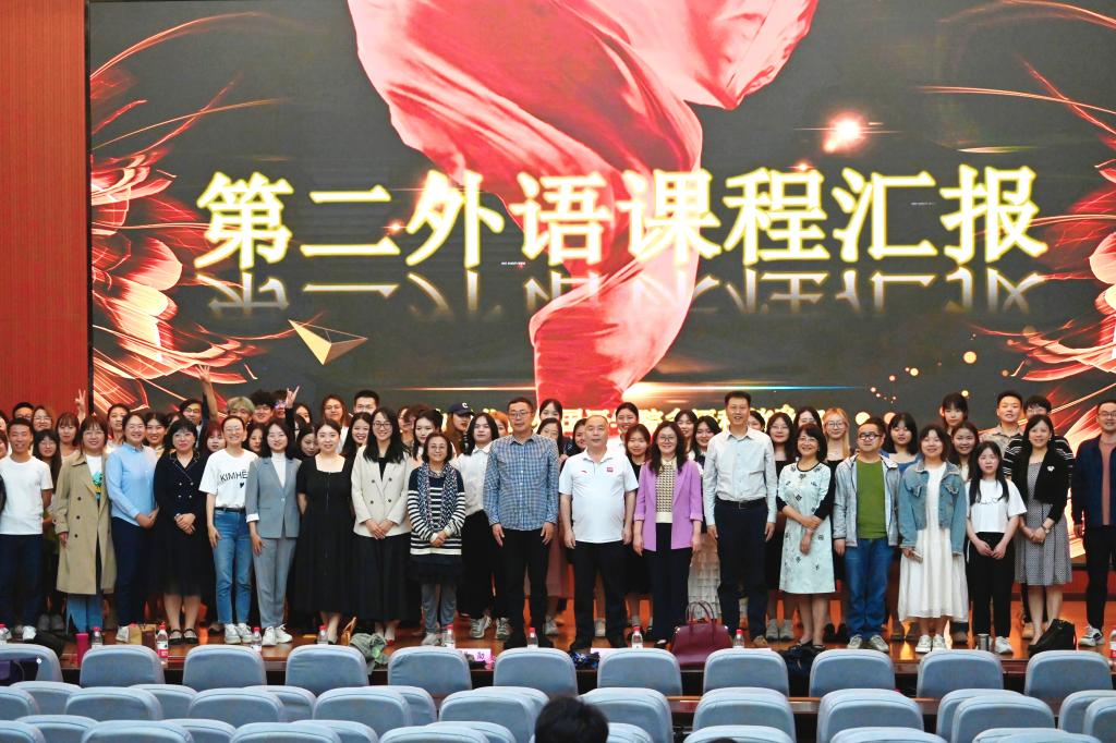 為探索實踐以培養(yǎng)英語+多語種復(fù)合型國際化人才為目標(biāo)的新思路,提高學(xué)生第二外語應(yīng)用能力,展現(xiàn)第二外語教學(xué)成效,5月31日下午,我?!暗诙庹Z”課程匯報演出在鄠邑校區(qū)弘石學(xué)術(shù)報告廳成功舉辦。副校長陳軍斌出席匯報活動。教務(wù)處負(fù)責(zé)人,外國語學(xué)院負(fù)責(zé)人、部分教師及300余名學(xué)生參加了活動。