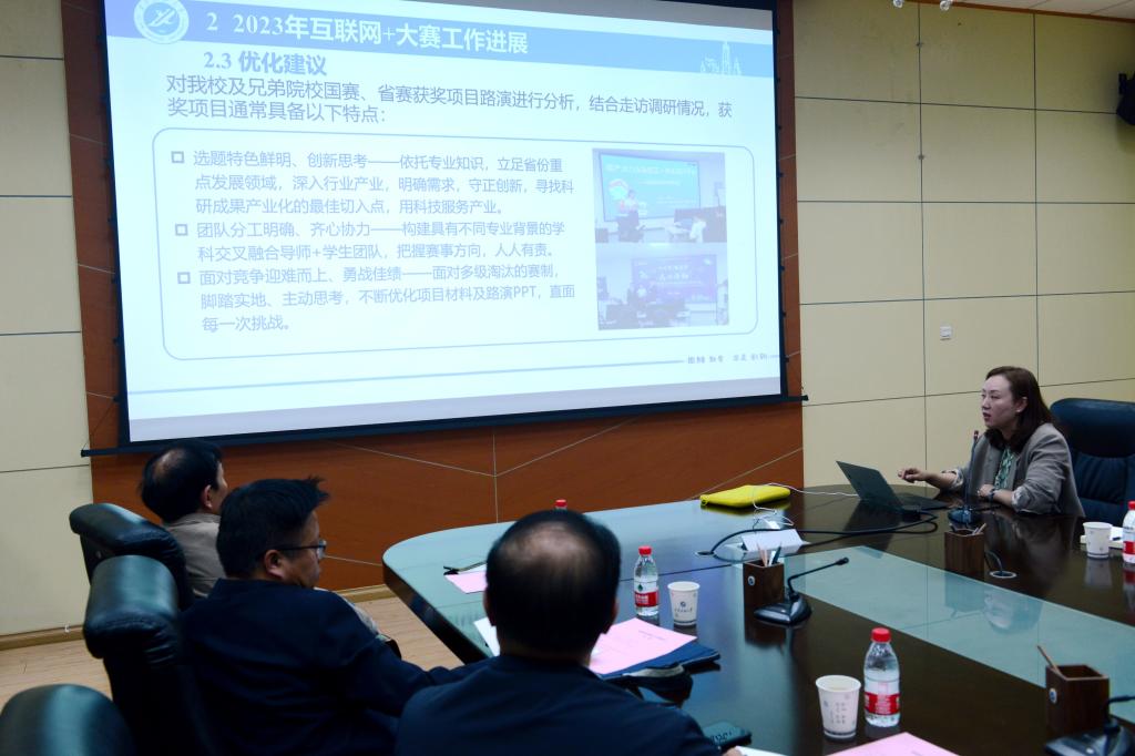 會上,賈莉娜對本科教育教學(xué)評估中創(chuàng)新創(chuàng)業(yè)教育指標(biāo)體系進(jìn)行了解讀,并對我校2023年“互聯(lián)網(wǎng)+”大賽工作和大學(xué)生創(chuàng)新創(chuàng)業(yè)訓(xùn)練計劃項目進(jìn)行總結(jié)與部署。