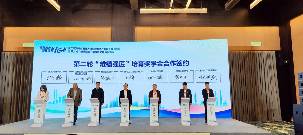 4月25日,我校受邀參加“奔甬而來·浙里鎮(zhèn)High”浙江鎮(zhèn)海綠色石化人力資源服務(wù)產(chǎn)業(yè)園(籌)啟動暨第二輪“雄鎮(zhèn)強(qiáng)匠”培育獎學(xué)金簽約儀式。學(xué)生工作部(處)部(處)長、就業(yè)指導(dǎo)中心主任王亮帶隊出席并代表學(xué)?,F(xiàn)場簽約。