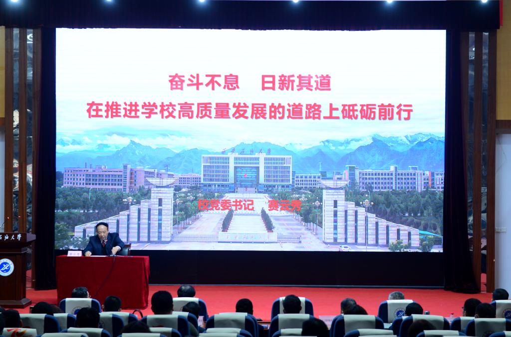 賽云秀強(qiáng)調(diào),站在新的歷史起點(diǎn)上,學(xué)校改革發(fā)展的機(jī)遇和挑戰(zhàn)并存,新的事業(yè)需要我們開(kāi)啟,新的責(zé)任需要我們擔(dān)當(dāng)。全校教職工要堅(jiān)持以習(xí)近平新時(shí)代中國(guó)特色社會(huì)主義思想為指導(dǎo),深入學(xué)習(xí)貫徹黨的二十大精神,堅(jiān)定信心、同心同德,埋頭苦干、勇毅前行,為實(shí)現(xiàn)學(xué)?!笆奈濉卑l(fā)展目標(biāo)而努力奮斗,在全面建設(shè)特色鮮明的高水平教學(xué)研究型大學(xué)的進(jìn)程中作出新的更大貢獻(xiàn)。