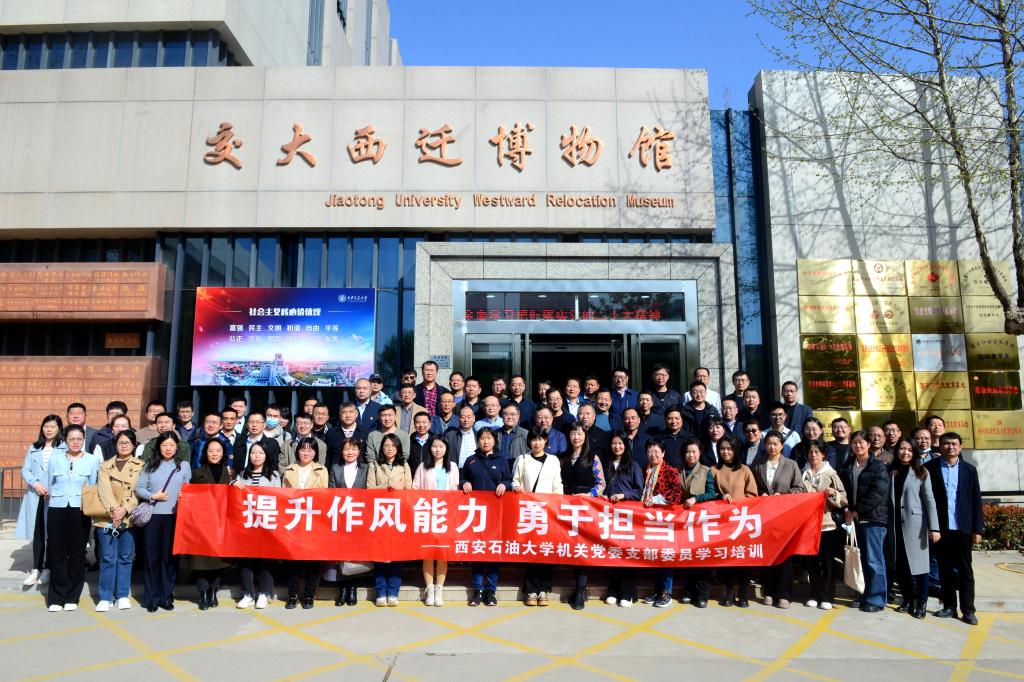 為進(jìn)一步加強(qiáng)黨支部組織建設(shè),提升支部委員的工作能力和水平,鞏固拓展學(xué)校作風(fēng)建設(shè)專項(xiàng)行動(dòng)成果,助力作風(fēng)能力提升年活動(dòng)有效推進(jìn),機(jī)關(guān)黨委決定在完成黨支部換屆工作的基礎(chǔ)上,對(duì)機(jī)關(guān)全體黨委委員、黨總支委員、黨支部委員進(jìn)行一次全面培訓(xùn)。3月13日下午,機(jī)關(guān)黨委組織支部委員90余人赴西安交通大學(xué)西遷博物館參觀學(xué)習(xí)。