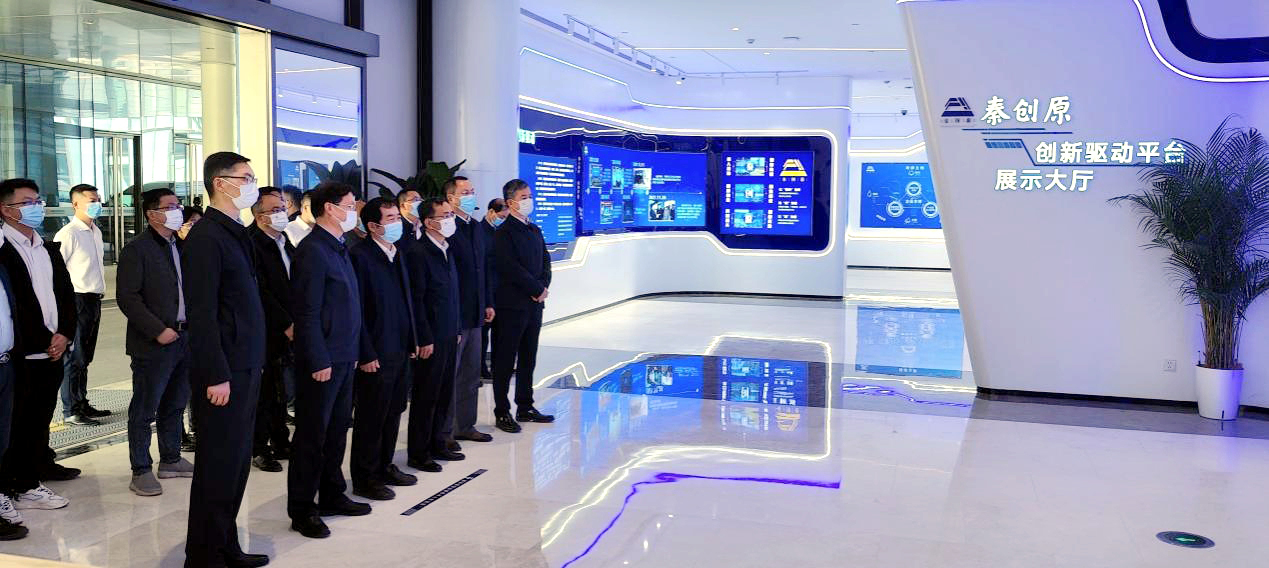 李天太一行首先參觀了秦創(chuàng)原平臺項目?,F(xiàn)場與西咸新區(qū)管委會主任姜建春、副主任陳輝就進一步深化產(chǎn)學(xué)研合作、人才吸納等工作進行了深入的探討與溝通。