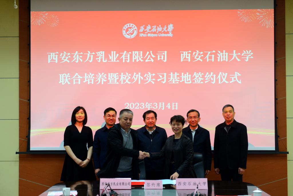 會(huì)上,還舉行了西安東方乳業(yè)有限公司和西安石油大學(xué)聯(lián)合培養(yǎng)暨校外實(shí)習(xí)基地簽約儀式。西安東方乳業(yè)有限公司總經(jīng)理丁建平和經(jīng)濟(jì)管理學(xué)院院長(zhǎng)王君萍代表雙方簽約。學(xué)校將以本次校企合作簽約為契機(jī),認(rèn)真落實(shí)合作協(xié)議相關(guān)內(nèi)容,以校企合作、產(chǎn)教融合為突破口,積極發(fā)揮學(xué)校人才優(yōu)勢(shì)和專業(yè)優(yōu)勢(shì),扎實(shí)推進(jìn)校企在科學(xué)研究、人才培養(yǎng)、學(xué)術(shù)交流和教學(xué)實(shí)踐等方面開展多層次、多形式、多領(lǐng)域的深度合作、互利共贏。