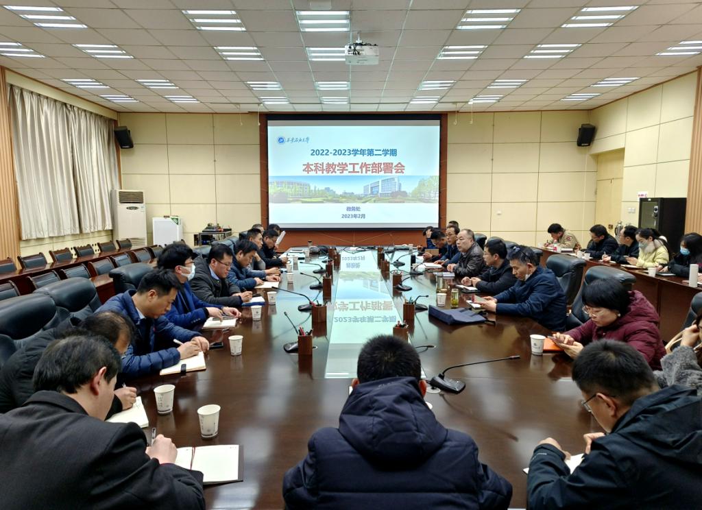 陳軍斌指出,各教學(xué)單位要按照學(xué)校春季開學(xué)工作的總體要求,扎實(shí)做好新學(xué)期各項(xiàng)教學(xué)準(zhǔn)備工作,進(jìn)一步細(xì)化春季學(xué)期本科教學(xué)工作任務(wù),確保各項(xiàng)工作平穩(wěn)有序進(jìn)行。他強(qiáng)調(diào),一是各院(系)要高度重視上學(xué)期課程考核工作,結(jié)合學(xué)生上學(xué)期學(xué)習(xí)實(shí)際,精心組織開展線下串講和輔導(dǎo)答疑,合理安排公共課程和專業(yè)課程考試,同時(shí)加快進(jìn)度補(bǔ)足補(bǔ)齊實(shí)驗(yàn)實(shí)習(xí)等實(shí)踐教學(xué)環(huán)節(jié),確保各項(xiàng)教學(xué)工作高質(zhì)量完成。二是加強(qiáng)招生宣傳與錄取工作,招生工作是立德樹人的起點(diǎn),優(yōu)質(zhì)生源是人才培養(yǎng)質(zhì)量的基礎(chǔ),要不斷創(chuàng)新工作思路,豐富宣傳方式,強(qiáng)化生源基地建設(shè),總結(jié)凝練專業(yè)特色與人才培養(yǎng)成效,增強(qiáng)學(xué)校影響力,提升宣傳實(shí)效,貫徹招生宣傳永遠(yuǎn)在路上的理念。三是深化教育教學(xué)改革,聚焦本科教學(xué)核心指標(biāo),督導(dǎo)檢查教改項(xiàng)目落實(shí)進(jìn)度,強(qiáng)化一流專業(yè)建設(shè),以課程建設(shè)為突破口,積極籌備一流課程申報(bào),全面推進(jìn)課程思政建設(shè),打造優(yōu)秀課程教學(xué)團(tuán)隊(duì),加強(qiáng)一流教材申報(bào)與建設(shè),提前謀劃精準(zhǔn)施策,統(tǒng)籌做好申報(bào)各環(huán)節(jié)工作,持續(xù)推進(jìn)工程教育專業(yè)認(rèn)證工作,加強(qiáng)實(shí)驗(yàn)教學(xué)平臺(tái)建設(shè),著力培育高水平教學(xué)成果,推動(dòng)本科教育高質(zhì)量發(fā)展。四是圍繞新一輪本科教育教學(xué)審核評(píng)估指標(biāo)體系,制定學(xué)校工作體系和實(shí)施方案,扎實(shí)做好基礎(chǔ)數(shù)據(jù)統(tǒng)計(jì)工作,對標(biāo)對本籌備自評(píng)報(bào)告,提出問題清單,組織學(xué)習(xí)審核評(píng)估指標(biāo)體系,查缺補(bǔ)漏著手準(zhǔn)備基層教學(xué)資料歸檔工作。五是以審核評(píng)估指標(biāo)體系為依據(jù),做好教學(xué)經(jīng)費(fèi)預(yù)算,全力保障實(shí)驗(yàn)室建設(shè)、教學(xué)日常運(yùn)行及教學(xué)資源條件,同時(shí)保證經(jīng)費(fèi)投入的合理性、使用的有效性以及管理的規(guī)范性。六是扎實(shí)推進(jìn)師德教風(fēng)建設(shè),牢固樹立教師師德底線意識(shí),嚴(yán)肅教風(fēng)教紀(jì),愛業(yè)愛生,身體力行,爭做“德高為師,身正為范”以及“四有”好老師。七是各級(jí)教學(xué)管理人員要嚴(yán)于律己,加強(qiáng)學(xué)習(xí),以身作則,提高教學(xué)管理水平,增強(qiáng)統(tǒng)籌協(xié)調(diào)、系統(tǒng)謀劃能力,做到“勤思考、勤動(dòng)手、勤動(dòng)嘴、勤動(dòng)腿”,深入課堂一線,深入基層教學(xué)組織,善于在細(xì)微處發(fā)現(xiàn)問題解決問題,以高效的教學(xué)管理促進(jìn)教學(xué)質(zhì)量有力提升。