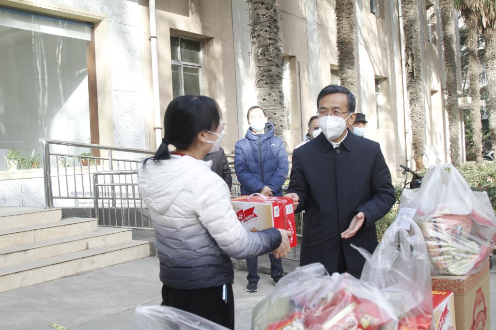 1月19日上午,在新春佳節(jié)來臨之際,校黨委副書記張木、副校長(zhǎng)蘇文甫帶領(lǐng)工會(huì)全體同志分別在雁塔校區(qū)和鄠邑校區(qū)慰問了保衛(wèi)處、后勤處、校醫(yī)院以及假期值班堅(jiān)守在一線工作崗位上的部分教職工,帶去了學(xué)校對(duì)他們的關(guān)懷和慰問。