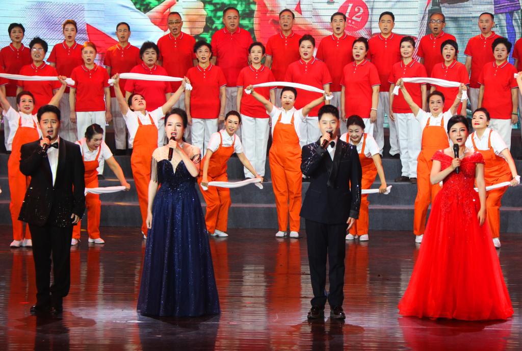 在節(jié)目錄制現(xiàn)場,伴隨著時代號子激揚的旋律,領唱楊彩鴿、黃耀文、郭小榮、張澤宇陸續(xù)登場,嗓音華美高亢,唱法驚艷全場。身著鮮艷服裝的老年大學舞蹈隊員們熱情投入,翩翩起舞,時而像彩云在起伏流動,時而又像鮮花綻放盛開。老年大學合唱團員們以嘹亮的歌聲唱出了動聽的音律之美,唱出了老干部對黨的無限忠誠和熱愛。優(yōu)美的舞蹈、豪邁的合唱共同演繹了西石大人建功立業(yè)新時代的堅強決心。錄制十分順利,得到了節(jié)目組的高度肯定,領唱演員和部分舞蹈隊員還被導演安排參加了謝幕演出。