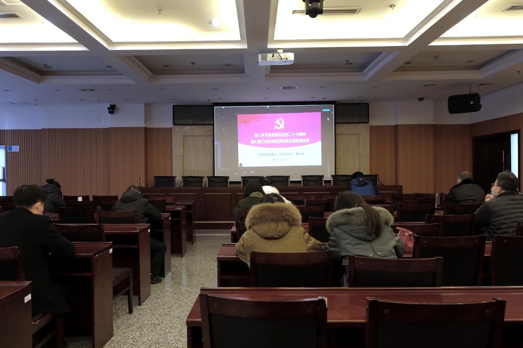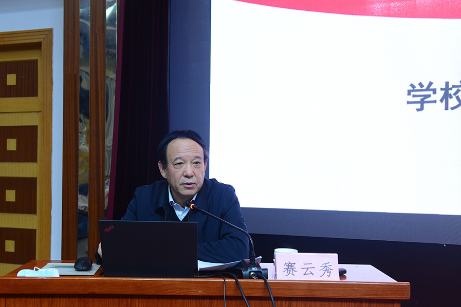 賽云秀指出,黨的二十大是在全黨全國各族人民邁上全面建設(shè)社會主義現(xiàn)代化國家新征程、向第二個百年奮斗目標(biāo)進(jìn)軍的關(guān)鍵時刻召開的一次十分重要的大會。學(xué)習(xí)宣傳貫徹黨的二十大精神是當(dāng)前和今后一個時期學(xué)校的首要政治任務(wù)。全校上下要全面準(zhǔn)確學(xué)習(xí)領(lǐng)會黨的二十大精神,深刻領(lǐng)悟“兩個確立”的決定性意義,增強(qiáng)“四個意識”、堅定“四個自信”、做到“兩個維護(hù)”,自覺用黨的二十大精神統(tǒng)一思想和行動。