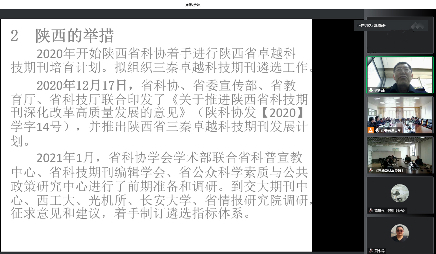 為深入貫徹中央關(guān)于建設(shè)一流科技期刊的決策部署,推進(jìn)我省科技期刊高質(zhì)量發(fā)展,11月1日上午,由陜西省科學(xué)技術(shù)協(xié)會(huì)主辦、我校承辦的陜西省科技期刊創(chuàng)新發(fā)展學(xué)術(shù)研討會(huì)在雁塔校區(qū)行政樓五樓會(huì)議室舉辦。本次研討會(huì)系省科協(xié)2022年度科技期刊項(xiàng)目之研討活動(dòng)類項(xiàng)目,以“陜西省能源類科技期刊戰(zhàn)略協(xié)同發(fā)展打造集群數(shù)字化服務(wù)平臺(tái)”為主題采用線上線下結(jié)合的方式進(jìn)行。我校副校長李華,陜西省科學(xué)技術(shù)協(xié)會(huì)學(xué)會(huì)部部長朱煒、四級(jí)調(diào)研員何帥出席會(huì)議。我校期刊中心負(fù)責(zé)人及相關(guān)工作人員線下參會(huì),《石油管材與儀器》《焊管》《測井技術(shù)》《非常規(guī)油氣》《低滲透油氣田》《西安科技大學(xué)學(xué)報(bào)》《熱力發(fā)電》等省內(nèi)能源類科技期刊主編及編輯以線上方式參會(huì)。會(huì)議由我校科技處處長張益主持。