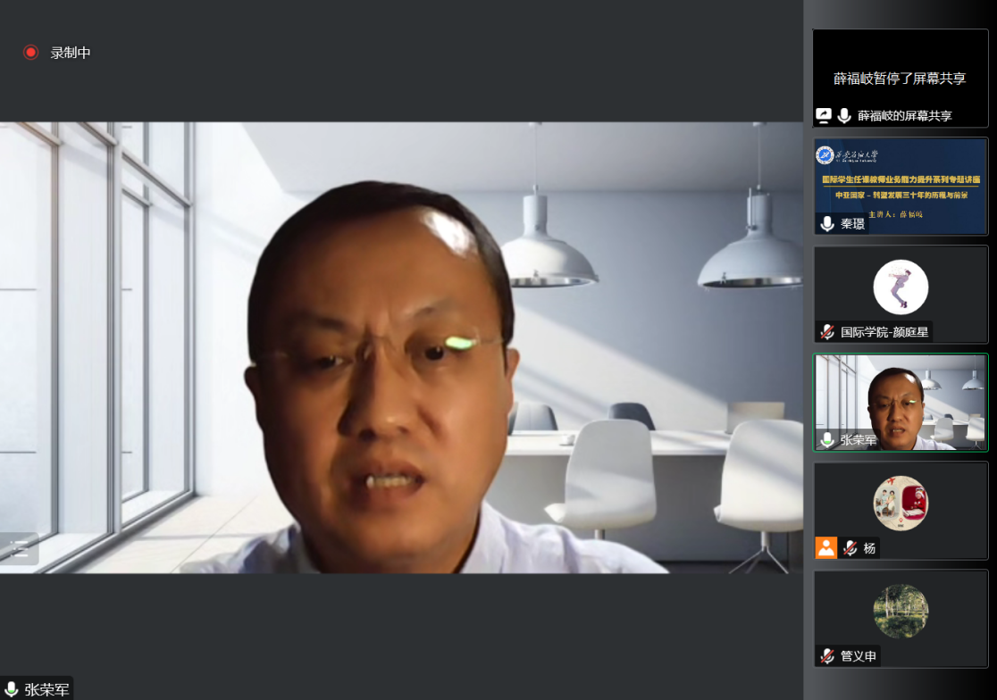 首場講座《中亞國家-轉(zhuǎn)型發(fā)展三十年的歷程與前景》由中國社會科學(xué)院俄羅斯東歐中亞研究所研究員、戰(zhàn)略研究室主任,中俄戰(zhàn)略協(xié)作高端合作智庫辦公室主任,國務(wù)院發(fā)展研究中心歐亞社會發(fā)展研究所研究員,中國國際電視臺俄語頻道特約評論員、新聞評論員薛福岐老師主講。