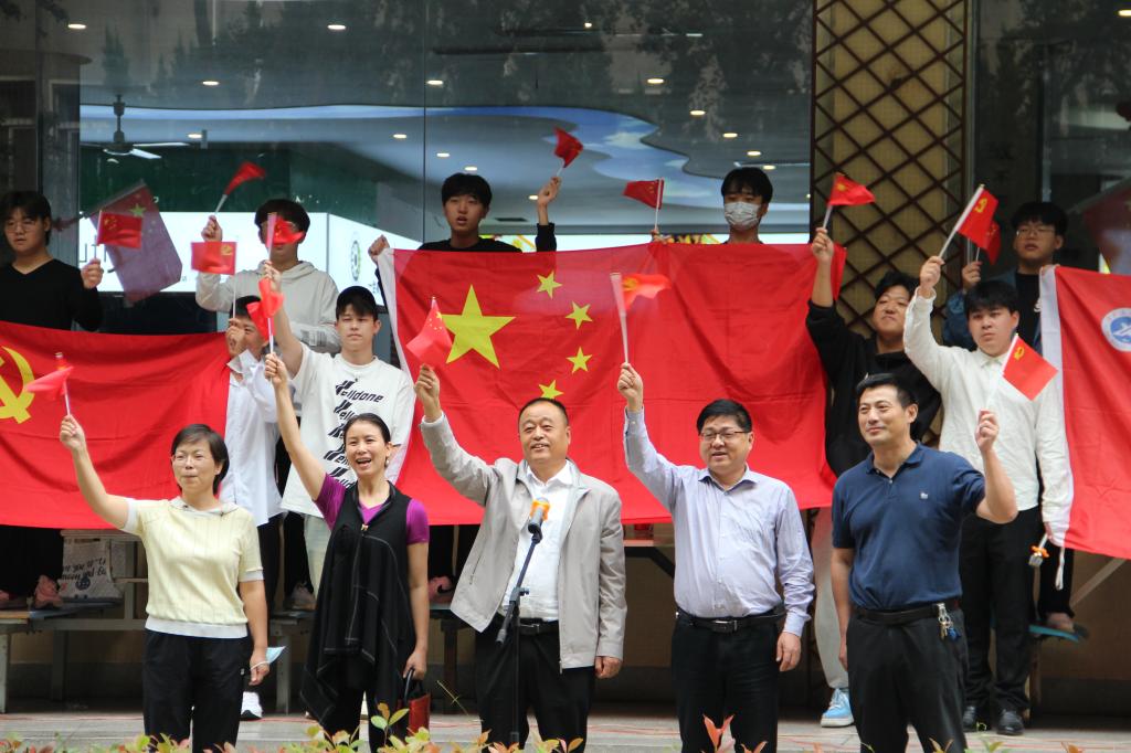 中午12點10分,“紅歌快閃”活動正式開始,首先以小合唱的形式演繹了《彈起我心愛的土琵琶》,在優(yōu)美的旋律中,學生飽含深情地演唱了《把一切獻給黨》《領航》,用歌聲致敬偉大的黨、偉大的祖國和偉大的時代。最后師生集體合唱了《輝煌明天》,用歌聲抒發(fā)心中愛國熱忱。活動在師生們“祝祖國母親生日快樂”的歡呼聲中圓滿結束。