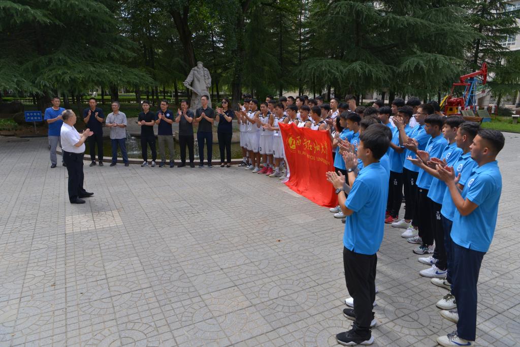 代表團副團長、體育學院院長李壽邦帶領大家進行出征宣誓,并向所有參加本次賽事的教練、工作人員、隊員提出嚴格要求。要求大家嚴格賽風賽紀,遵守比賽規(guī)則和賽場紀律,服從裁判,尊重對手,團結協(xié)作,公平競爭,發(fā)揚西石大“鐵人”精神,拿出“鐵人”意志,頑強拼搏,賽出風格,賽出水平!