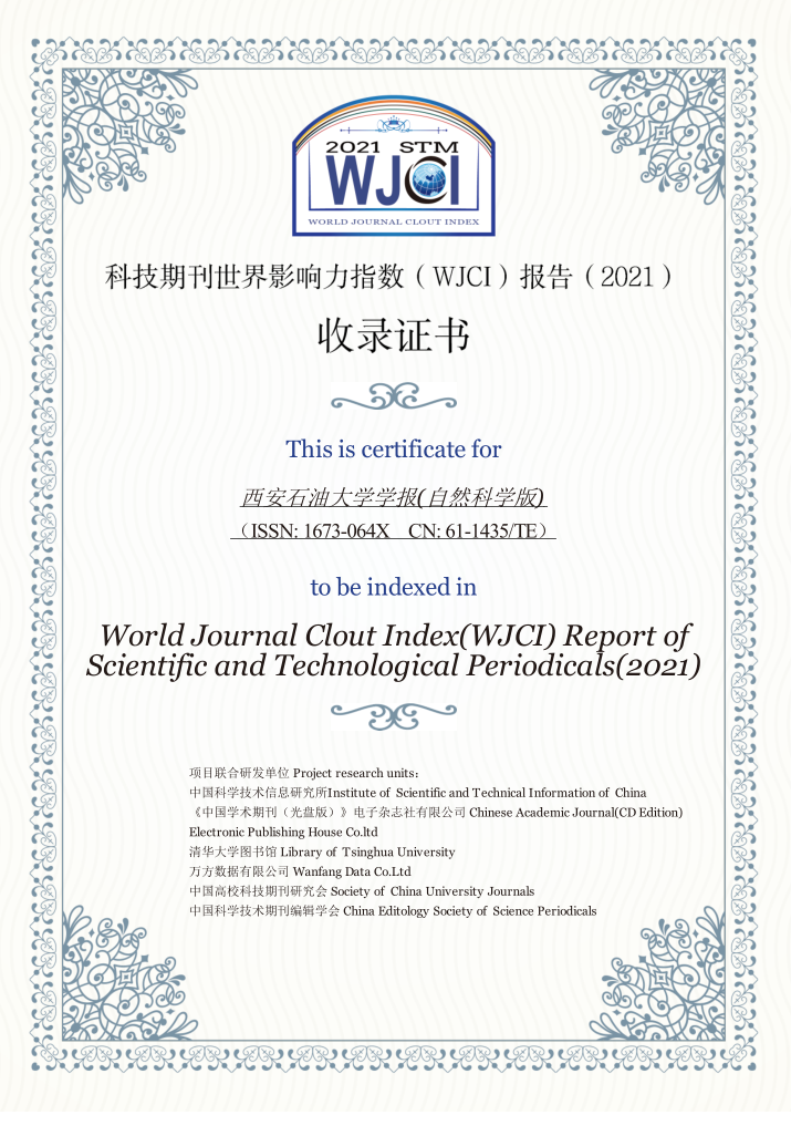 另外,《西安石油大學(xué)學(xué)報(自然科學(xué)版)》繼續(xù)入選《科技期刊世界影響力指數(shù)(WJCI)報告(2021)》,WJCI值為0.582,期刊影響力和競爭力穩(wěn)步提升,本刊編輯部將繼續(xù)堅持高質(zhì)量辦刊宗旨,開拓創(chuàng)新,不斷提高期刊質(zhì)量。