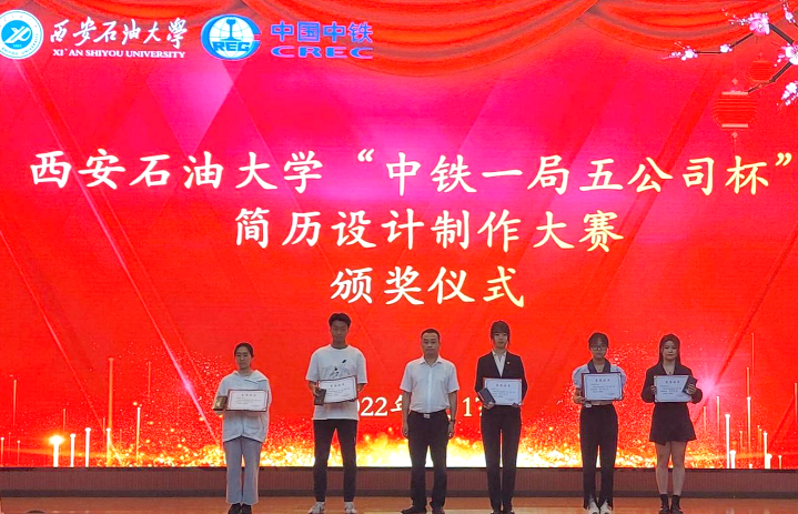 為有效提升我校學(xué)生的簡(jiǎn)歷設(shè)計(jì)制作能力,引導(dǎo)學(xué)生樹(shù)立科學(xué)的崗位認(rèn)知,6月17日下午,由陜西省普通高等學(xué)校畢業(yè)生就業(yè)服務(wù)中心主辦、我校和中鐵一局集團(tuán)第五工程公司承辦的“中鐵一局五公司杯”簡(jiǎn)歷設(shè)計(jì)制作大賽頒獎(jiǎng)儀式在我校鄠邑校區(qū)弘石學(xué)術(shù)報(bào)告廳舉行。中鐵一局集團(tuán)第五工程有限公司副總經(jīng)理黃曉春,我校學(xué)生工作部(處)、教務(wù)處相關(guān)負(fù)責(zé)人出席頒獎(jiǎng)儀式。