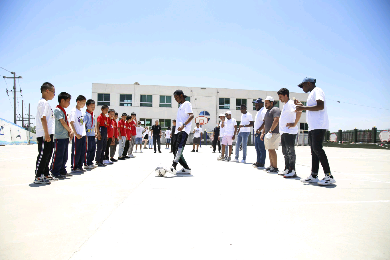 啟動儀式結(jié)束后,“感知中國—魅力三秦行”的留學(xué)生一行來到永壽縣永平鎮(zhèn)裕豐村、永平寄宿小學(xué)、堅固村,實地感受永平鎮(zhèn)脫貧攻堅巨大變化。在脫貧攻堅示范村——裕豐村,留學(xué)生們參觀了移民搬遷新社區(qū)、鄉(xiāng)村新建百壽圖廣場、新型農(nóng)家樂庭院、蔬果采摘園、麥田,了解當(dāng)?shù)卮迕癯宰⌒械男伦兓?,留學(xué)生們聽了紛紛豎起大拇指,為當(dāng)?shù)伉B語花香的田園風(fēng)光、干凈整潔的人居環(huán)境點贊。在永平寄宿小學(xué),校長為留學(xué)生講述了這所小學(xué)的悠久歷史,留學(xué)生與小學(xué)生愉快地交流。學(xué)校專程為小學(xué)生們帶去了100本捐贈圖書、5個嶄新的足球。來自坦桑尼亞的留學(xué)生馬哈尼帶著他的足球隊隊員跟小學(xué)生互動起來,教他們怎么踢足球。在學(xué)校定點幫扶村——堅固村,留學(xué)生們在村委會便民服務(wù)中心、村委黨支部活動中心,現(xiàn)場聽村書部書記、駐村干部講述了新鄉(xiāng)村建設(shè)以來村里的變化,留學(xué)生們還跟隨駐村干部來到村里重點幫扶戶家,參觀了村民的院落、養(yǎng)牛棚。