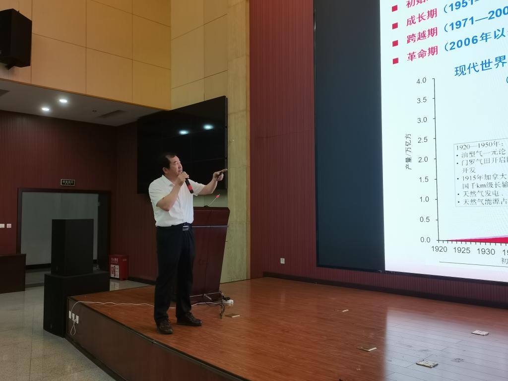 在授課中,李天太首先圍繞習(xí)近平總書記對國家能源安全作出的批示指示精神、國家“雙碳“目標(biāo)和世界能源格局等方面,向在場師生介紹了學(xué)校成立新能源學(xué)院、土木工程學(xué)院的背景以及必要性。隨后分別介紹了世界油氣發(fā)展趨勢和我國油氣發(fā)展趨勢。他以人類社會發(fā)展為主線,以能源科技革命為人類社會發(fā)展提供不竭新動力為切入點(diǎn),通過詳實的數(shù)據(jù)和大量的圖表詳細(xì)闡述了世界油氣發(fā)展趨勢和我國油氣發(fā)展趨勢,強(qiáng)調(diào)在我國目前能源戰(zhàn)略和結(jié)構(gòu)體系下,新能源將發(fā)揮保障國家能源戰(zhàn)略“接替”與“主力”作用。最后,李天太結(jié)合自己30余年能源行業(yè)工作學(xué)習(xí)感悟,對新能源發(fā)展趨勢作出展望。他希望新能源學(xué)院、土木工程學(xué)院的廣大學(xué)子樹立遠(yuǎn)大理想,努力學(xué)習(xí)、不負(fù)韶華,爭取為保障國家能源戰(zhàn)略安全作出貢獻(xiàn)。