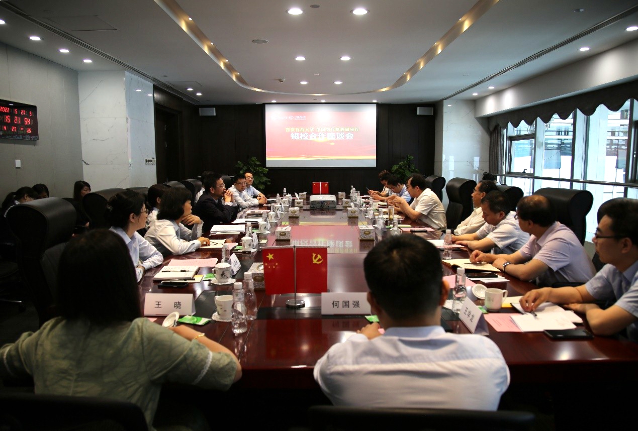 蒙震代表中國銀行陜西省分行對李天太一行的來訪表示熱烈歡迎,向學校長期以來對中國銀行的信任和支持表示誠摯的感謝。他高度肯定了西安石油大學秉承“愛國奉獻、艱苦奮斗、科學求實、開拓進取”的辦學精神和“四實一新”育人標準,對雙方“十四五”期間戰(zhàn)略合作前景充滿信心。他談到,中國銀行高度重視教育行業(yè)發(fā)展,將高校視作重要的服務對象與合作伙伴。近年來,中國銀行充分發(fā)揮中銀集團業(yè)務優(yōu)勢,持續(xù)提升科技金融服務能力,聯(lián)合教育主管部門和高校開展了一系列有益探索與創(chuàng)新,傾力支持教育事業(yè)發(fā)展。他表示,中國銀行陜西省分行將著力在信息化校園、黨建共建、拓崗就業(yè)等領域與學校開展多層次廣泛合作,不斷探索銀校合作新模式、新機制、新產品,為助推學校高質量發(fā)展貢獻力量。