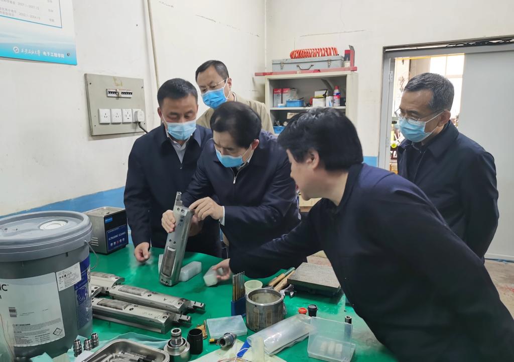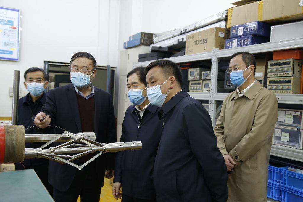 調(diào)研期間,何江川書記在學(xué)校領(lǐng)導(dǎo)陪同下參觀了油氣鉆井國家工程實驗室井下測控研究室和陜西省油氣井測控技術(shù)重點實驗室,詳細(xì)了解了旋轉(zhuǎn)導(dǎo)向鉆井技術(shù)與裝備、測井技術(shù)與裝備、油氣井可視化檢測技術(shù)與裝備的研發(fā)進(jìn)展、核心技術(shù)和應(yīng)用情況,并與研發(fā)人員進(jìn)行了深入的交流和探討。