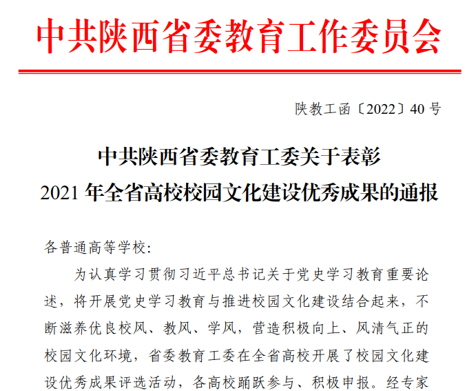 我校榮獲2021年全省高校校園文化建設(shè)優(yōu)秀成果一等獎