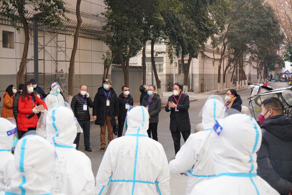 1月15日上午,校黨委書記、新冠肺炎疫情防控領(lǐng)導(dǎo)小組組長(zhǎng)賽云秀深入雁塔校區(qū)南院全員核酸檢測(cè)工作一線,看望慰問(wèn)樓長(zhǎng)、單元長(zhǎng)、師生志愿者和支援全員核酸檢測(cè)工作的鎮(zhèn)安縣醫(yī)護(hù)小分隊(duì),副校長(zhǎng)、新冠肺炎疫情防控領(lǐng)導(dǎo)小組常務(wù)副組長(zhǎng)蘇文甫和學(xué)校疫情防控領(lǐng)導(dǎo)小組辦公室、工作力量調(diào)配組、校園包片工作組相關(guān)負(fù)責(zé)人陪同。
