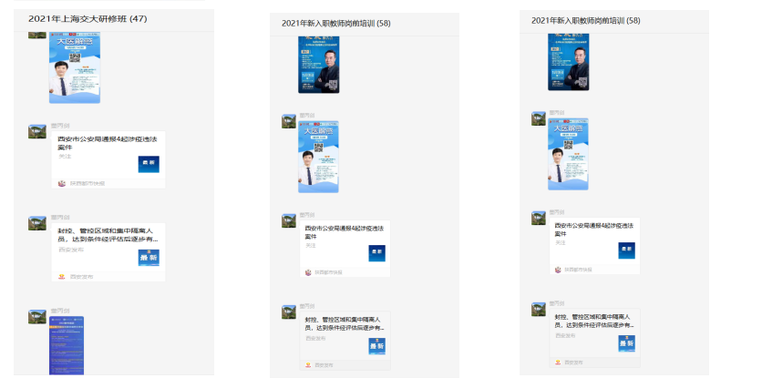 用心服務(wù)教師發(fā)展,助力育人能力提升。聯(lián)合教務(wù)處組織教師開(kāi)展課程思政專(zhuān)題網(wǎng)絡(luò)學(xué)習(xí),切實(shí)提升教師課程思政建設(shè)的意識(shí)和能力。按照省教育廳《關(guān)于開(kāi)展疫情防控期間在線學(xué)習(xí)公益課的通知》要求,依托陜西省教育系統(tǒng)疫情防控期間在線學(xué)習(xí)云平臺(tái),下發(fā)學(xué)習(xí)通知,要求各單位組織管理人員和一線教師開(kāi)展在線學(xué)習(xí)公益課,助力疫情防控期間“停課不停學(xué)”。轉(zhuǎn)發(fā)上海交通大學(xué)、華東師范大學(xué)聯(lián)合舉辦的“助金課堂”系列講座和全國(guó)模范教師、北京師范大學(xué)教授、博士生導(dǎo)師康震教授線上講座通知,切實(shí)提升教師教育教學(xué)能力和育人水平。