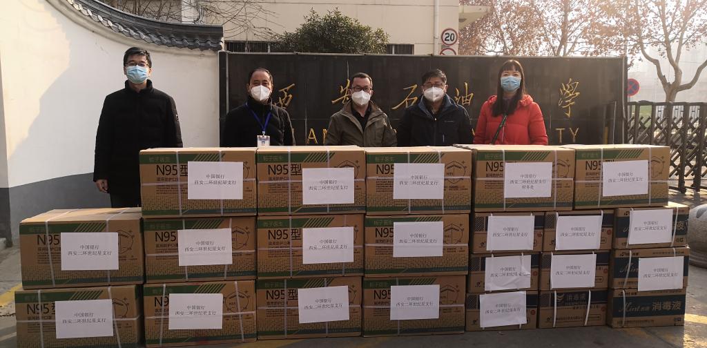 13日,經(jīng)我校總會計(jì)師樊曉民聯(lián)系,中國銀行西安二環(huán)世紀(jì)星支行為我校捐贈一批疫情防控物資,其中包含N95醫(yī)用防護(hù)口罩10300只,酒精225升。