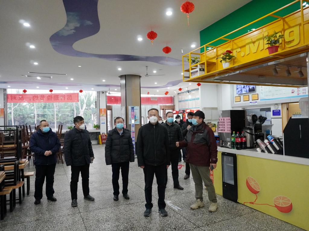 1228日上午,李延平書記帶隊(duì)檢查了雁塔校區(qū)兩個(gè)校門、南院食堂和學(xué)生宿舍的防疫措施落實(shí)情況,詳細(xì)查看和詢問了門禁值班、后勤保障、環(huán)境消殺、學(xué)生管理、線上教學(xué)等情況,先后向門禁值班的處科級(jí)干部、保衛(wèi)處、后勤管理處、研究生工作部負(fù)責(zé)人了解工作情況,并要求相關(guān)部門負(fù)責(zé)人針對(duì)師生反映的困難和問題,做好耐心解釋工作,有條件解決的一定要想方設(shè)法予以解決。李書記強(qiáng)調(diào),高校疫情防控形勢嚴(yán)峻復(fù)雜,一定要高度警惕,堅(jiān)決履行主體責(zé)任,強(qiáng)化陣地意識(shí),在封閉管理中扎實(shí)做好“外防輸入、內(nèi)防反彈、人物環(huán)境同防”各項(xiàng)工作。要嚴(yán)格落實(shí)省市和教育廳最新要求,連續(xù)作戰(zhàn)、嚴(yán)防死守,堅(jiān)決杜絕麻痹思想、僥幸心理,嚴(yán)格實(shí)行封閉管理,加強(qiáng)全員核酸檢測,做好師生日常健康監(jiān)測,確保各項(xiàng)防控措施落細(xì)落實(shí)落到位,堅(jiān)決打好疫情防控阻擊戰(zhàn)殲滅戰(zhàn)。