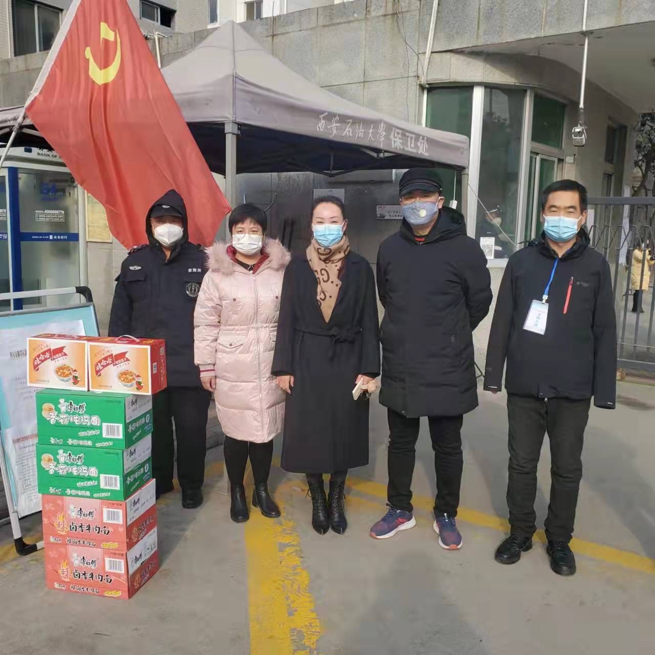 面對當(dāng)前嚴(yán)峻復(fù)雜的疫情形勢,學(xué)校各部門堅決貫徹落實學(xué)校黨委疫情防控決策部署。了解到后勤保障、核酸檢測、安全保衛(wèi)等一線工作人員工作繁忙顧不上吃飯、休息的實際,1227日,創(chuàng)新創(chuàng)業(yè)心先后為奮戰(zhàn)在疫情防控一線的后勤處、校醫(yī)院、保衛(wèi)部(處)送去方便面、八寶粥等物資,為一線工作人員送去寒冬里的溫暖,表達(dá)了對一線工作人員的感恩和敬意。蘇文甫副校長在現(xiàn)場肯定了創(chuàng)新創(chuàng)業(yè)中心感恩一線送溫暖的行動,表示此舉鼓舞了一線工作人員的干勁,溫暖了一線工作人員的心。