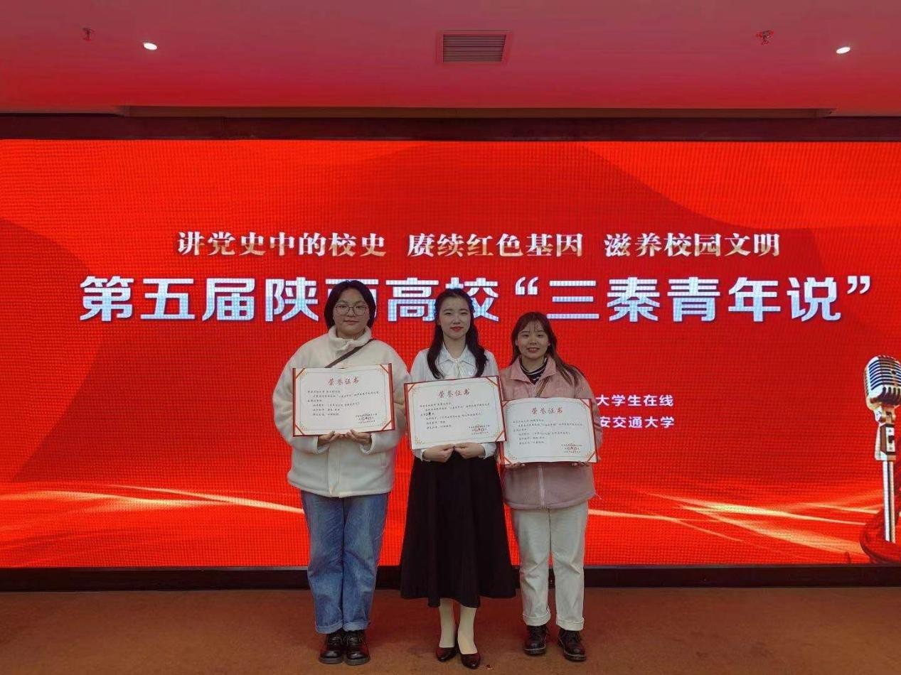 12月11日,第五屆陜西高?!叭厍嗄暾f”演講比賽決賽及頒獎儀式在西北工業(yè)大學友誼校區(qū)舉行。經(jīng)過層層選拔,我校計算機學院趙晨旭同學進入決賽,獲得比賽的三等獎,人文學院楊璐華、張義玲同學在省級復賽中獲得優(yōu)秀獎。我校黨委宣傳部、學生工作部(處)和相關學院高度重視、精心組織,獲得優(yōu)秀組織獎。