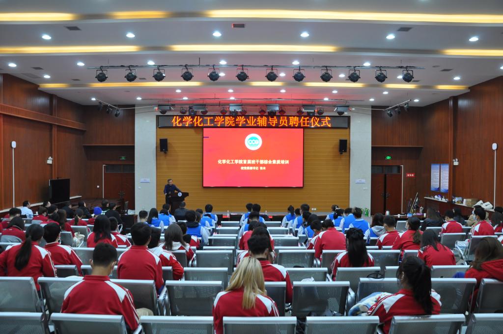 為深入貫徹落實《中共西安石油大學(xué)委員會關(guān)于進(jìn)一步加強(qiáng)本科生班級建設(shè)的實施意見》(西石大黨生〔2021〕42號)精神,構(gòu)建本科生“三位一體”學(xué)風(fēng)建設(shè)協(xié)同育人體系,11月29日晚,化學(xué)化工學(xué)院在鄠邑校區(qū)崇文樓就業(yè)指導(dǎo)中心多功能廳舉辦學(xué)業(yè)輔導(dǎo)員聘任儀式暨班干部綜合素質(zhì)培訓(xùn)大會。校黨委副書記張木出席,學(xué)生工作部部長王亮,學(xué)生工作部副部長樊曉旭,化學(xué)化工學(xué)院黨委副書記祁帆參加聘任儀式。儀式由化學(xué)化工學(xué)院學(xué)工辦主任周鈺桐主持。