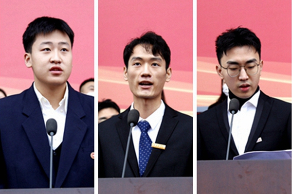 地球科學(xué)與工程學(xué)院物探2101班王振宇同學(xué)代表全體本科新生發(fā)言,石油工程學(xué)院2021級(jí)博士研究生趙一凡同學(xué)代表全體研究生新生發(fā)言,機(jī)械工程學(xué)院2019級(jí)碩士研究生李羿瑭同學(xué)代表全體在校學(xué)生發(fā)言。