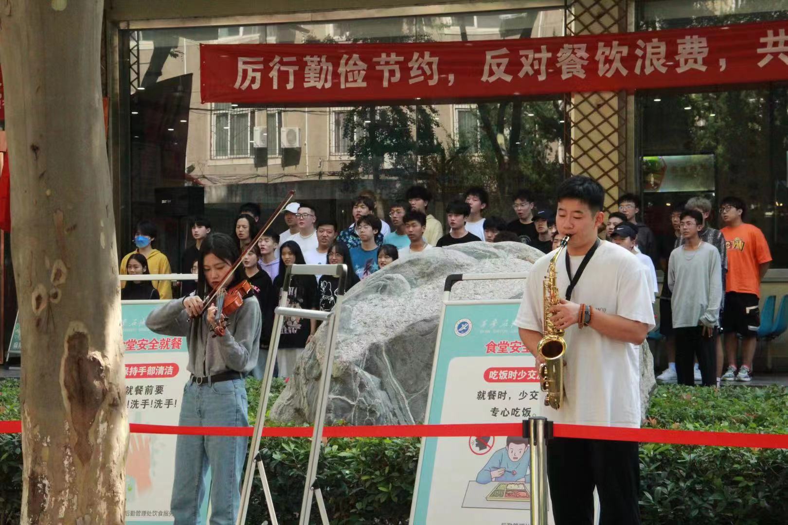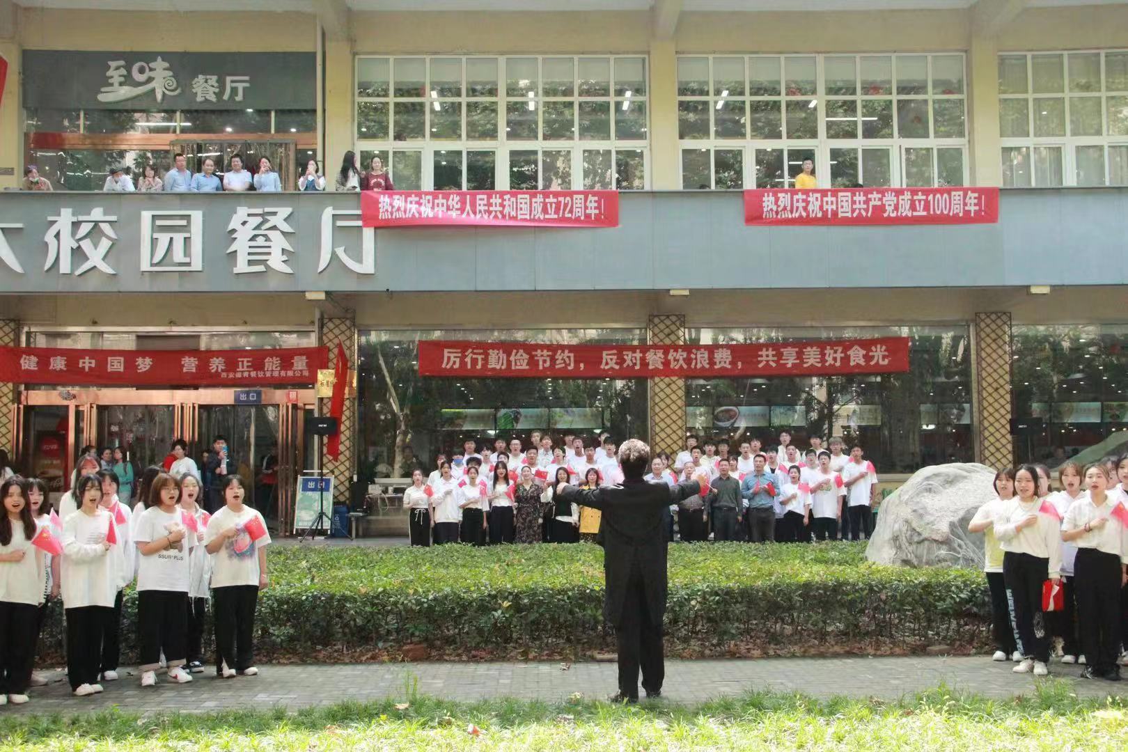 站在兩個(gè)一百年奮斗目標(biāo)的歷史交匯點(diǎn),為慶祝中華人民共和國(guó)72歲華誕和建黨100周年,930日中午,我校音樂系組織師生在雁塔校區(qū)學(xué)生餐廳舉辦“紅歌快閃”活動(dòng),吸引了眾多師生觀看,場(chǎng)面熱烈。副校長(zhǎng)陳軍斌,紀(jì)委、規(guī)劃處、石油工程學(xué)院、經(jīng)濟(jì)管理學(xué)院、音樂系主要負(fù)責(zé)人,以及80余名音樂系師生參加了本次紅歌快閃活動(dòng)。該活動(dòng)由音樂系黨總支策劃,何云、毛楠、朱玥三位老師指導(dǎo)。音樂系已連續(xù)四年五次舉辦紅歌快閃活動(dòng),唱響主旋律,展現(xiàn)師生良好的精神風(fēng)貌。