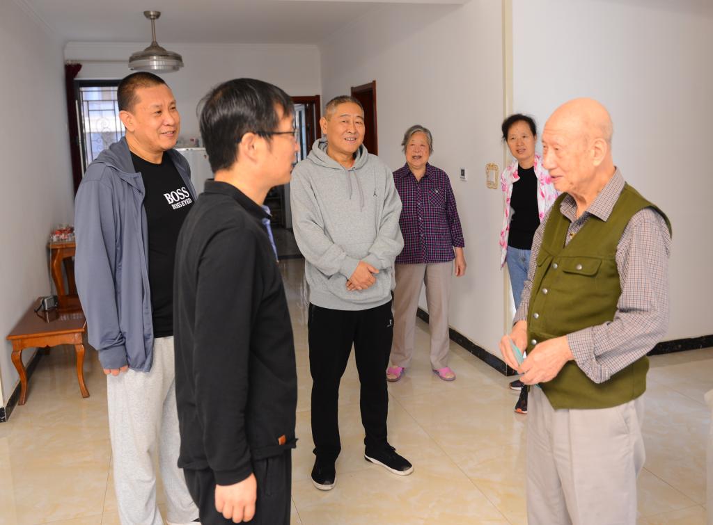 蘇文甫副校長先后來到六位離休干部家中,與他們親切交談、噓寒問暖,了解他們的日常生活和健康狀況??吹窖o元、董玉田、王世達、沈青怡、劉桂榮、鄭承蘭等多位離休干部身體康健、精神矍鑠,蘇文甫副校長特別高興,向老干部們介紹了學(xué)校今年以來各項工作的開展情況,感謝他們在學(xué)校建設(shè)發(fā)展過程中尤其是復(fù)校過程中做出的貢獻,感謝他們長期以來對學(xué)校工作的關(guān)心和支持,希望他們保重身體,健康快樂地生活,一如既往地關(guān)心和支持學(xué)校的建設(shè)與發(fā)展,為學(xué)校高質(zhì)量發(fā)展建言獻策。同時叮囑隨行人員,要對老干部政治上多關(guān)心、思想上多溝通、生活上多照顧、精神上多關(guān)懷,為他們安享晚年創(chuàng)造更好的條件。幾位老干部激動地回憶了當(dāng)年復(fù)校過程中的艱苦奮斗歲月,連連感謝學(xué)校領(lǐng)導(dǎo)對自己的關(guān)懷和照顧。他們認為在學(xué)校黨委的領(lǐng)導(dǎo)下,學(xué)校發(fā)展取得了可喜的成績,祝愿學(xué)校越辦越好,取得更大的輝煌。
