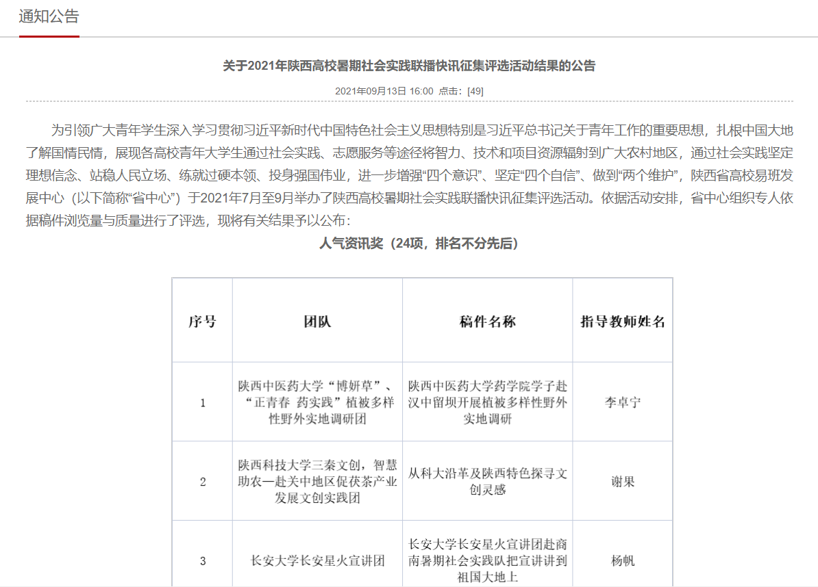 [捷報(bào)快遞]我?!凹t色尋訪”社會實(shí)踐團(tuán)隊(duì)獲陜西高校網(wǎng)絡(luò)思想政治工作中心表彰