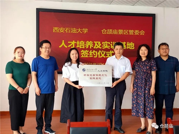 為深入貫徹習(xí)近平總書記在慶祝中國(guó)共產(chǎn)黨成立100周年大會(huì)上的講話精神,更好地發(fā)揮中華文明在“人類文明新形態(tài)”建設(shè)中的作用,提高我校人才培養(yǎng)的實(shí)踐能力,7月19日,楊戰(zhàn)社副校長(zhǎng)帶領(lǐng)人文學(xué)院師生先后赴白水縣倉頡廟景區(qū)管委會(huì)和富平縣文化館,舉行了西安石油大學(xué)人才培養(yǎng)及實(shí)訓(xùn)基地掛牌儀式。