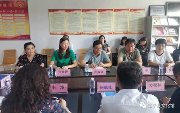 在富平縣文化館,楊戰(zhàn)社副校長(zhǎng)一行與富平縣文化和旅游局局長(zhǎng)盧戰(zhàn)強(qiáng)、副書記吳軍、副局長(zhǎng)文化館館長(zhǎng)張婷婷等就紅色文化的傳承與傳播、區(qū)域文化特色的凝練進(jìn)行了座談,然后一起參加了實(shí)踐基地揭牌儀式。盧戰(zhàn)強(qiáng)局長(zhǎng)介紹了富平縣文化和旅游產(chǎn)業(yè)的發(fā)展現(xiàn)狀。他說,富平縣的人文資源豐富、文化遺產(chǎn)眾多,紅色文化資源也十分豐富,希望能夠與高校結(jié)對(duì)交流合作,發(fā)揮西安石油大學(xué)人才優(yōu)勢(shì),就富平縣的非物質(zhì)文化傳承創(chuàng)新深化合作。吳軍副書記表示將以本次活動(dòng)為契機(jī),在文旅融合、人才培養(yǎng)、學(xué)生實(shí)習(xí)實(shí)踐等方面繼續(xù)與西安石油大學(xué)深度合作,進(jìn)一步加強(qiáng)溝通交流。