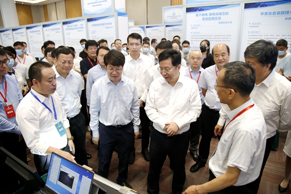 為落實(shí)秦創(chuàng)原創(chuàng)新驅(qū)動(dòng)平臺(tái)建設(shè)大會(huì)精神,加速“兩鏈”深度融合,推動(dòng)陜西省高校創(chuàng)新成果向秦創(chuàng)原匯聚,718日,由省教育廳、省科學(xué)技術(shù)廳、省工業(yè)和信息化廳、省人民政府國(guó)有資產(chǎn)監(jiān)督管理委員會(huì)、省工商業(yè)聯(lián)合會(huì)主辦的“秦創(chuàng)原·第五屆陜西省高校科技成果展暨校企對(duì)接洽談會(huì)”在秦創(chuàng)原“總窗口”——西咸新區(qū)召開。省委副書記胡衡華、副省長(zhǎng)方光華、副省長(zhǎng)程福波、省委教育工委書記王建利、省教育廳廳長(zhǎng)劉建林等領(lǐng)導(dǎo)在我校黨委副書記張木陪同下參觀了我??萍汲晒盗姓刮唬瑢?duì)我??萍汲晒D(zhuǎn)化工作給予指導(dǎo)與肯定。科技處負(fù)責(zé)組織參與本次展洽活動(dòng)。