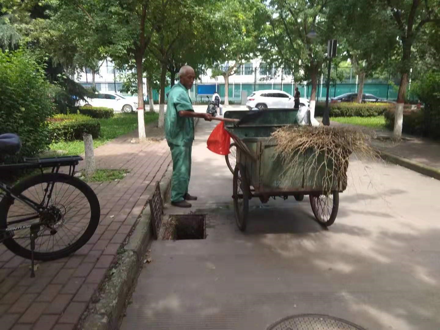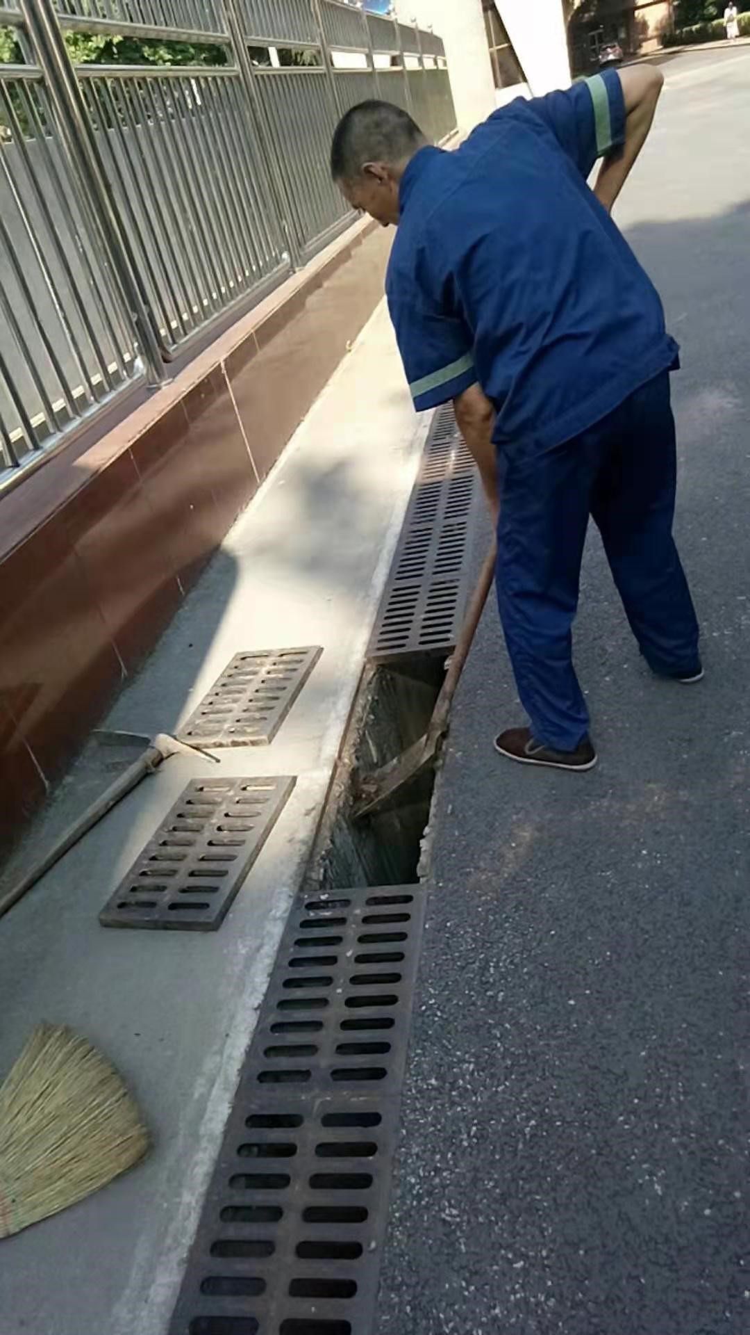 物業(yè)工作人員清理校園雨水收水井和排水溝內(nèi)雜物