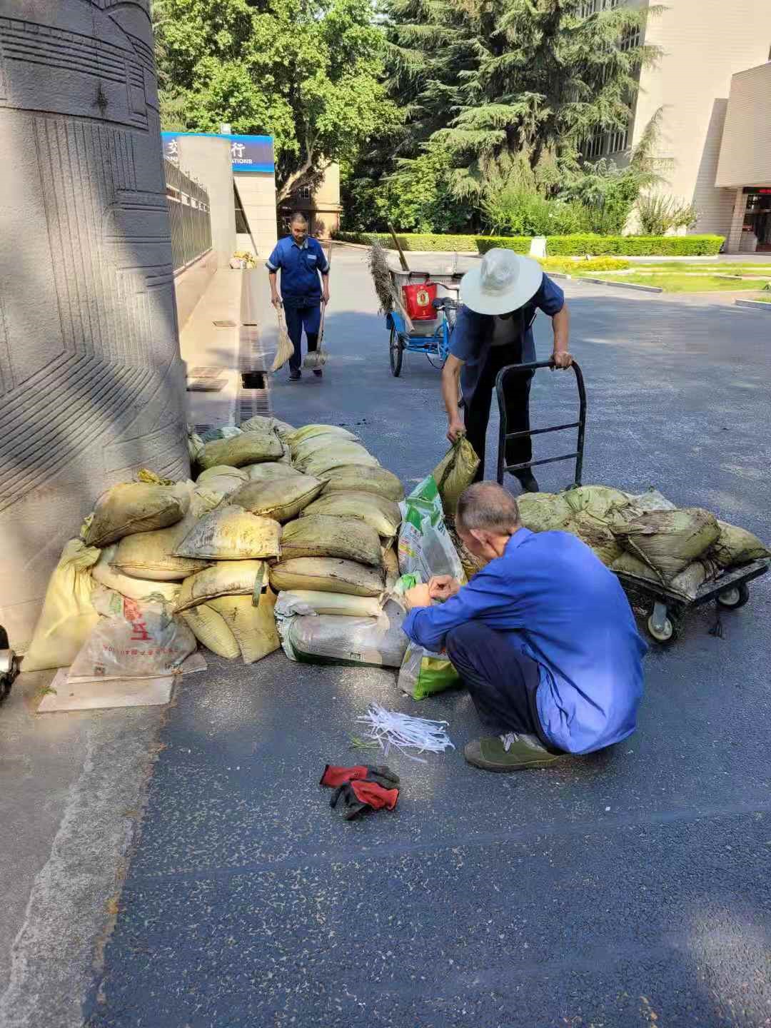 一時間,后勤黨員、干部、職工紛紛行動起來:大家各司其職,進(jìn)行隱患排查和整改,防汛物資準(zhǔn)備和值守人員落實(shí)。短短的一兩天時間里,對雁塔、鄠邑兩校區(qū)所有學(xué)生公寓樓、教學(xué)樓、院系樓、實(shí)驗(yàn)樓、圖書館樓、食堂、住宅樓等樓頂屋面雜物及雨水排水管管口進(jìn)行清理,確保樓頂雨水排水管口暢通;對沒有學(xué)生住宿的宿舍、未使用的教室進(jìn)行關(guān)窗斷電,以防雨水進(jìn)入樓內(nèi)引發(fā)次生傷害;對雁塔校區(qū)南門、28~30號住宅樓地下車庫、鄠邑校區(qū)地下車庫等低洼重點(diǎn)區(qū)域的防汛物資進(jìn)行檢查,對破損沙袋進(jìn)行替換和更新,先后在雁塔校區(qū)補(bǔ)充防汛沙袋200多條,鄠邑校區(qū)新增防汛沙袋1200多條;對校園內(nèi)雨水收水井內(nèi)雜物進(jìn)行清理,確保雨水井及排水管道通暢。此外,為防止大風(fēng)暴雨導(dǎo)致病枯樹枝條掉落發(fā)生危險,重點(diǎn)對枯枝朽木進(jìn)行排查、修剪,消除安全隱患。