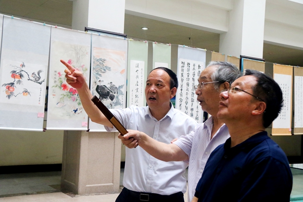 其他校領(lǐng)導稱贊了老同志參展的作品都具有一定的思想性、藝術(shù)性。老同志們把自己對黨的深厚感情,從不同的視角、不同的層面,用不同的藝術(shù)創(chuàng)作形式畫出來、寫出來、拍攝出來。他們將紅色文化與書畫攝影藝術(shù)有機結(jié)合,強烈表達出敬黨愛國的思想性,展示了黨在新時代新征程中取得的輝煌成就,豐富了黨史學習教育載體,擴大了黨史學習教育的廣度和深度,促進了離退休同志黨史學習教育的深入開展,是廣大離退休老同志通過書畫攝影藝術(shù)形式為慶祝中國共產(chǎn)黨成立100周年送上的文化厚禮。